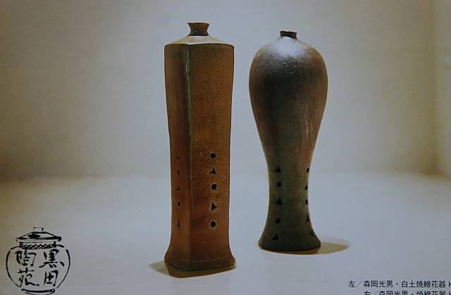 | 森岡光男(もりおかみつお)は1944年神奈川県逗子市出身。備前焼作家としての作陶を経て 77年に信州に移る。92年黒田陶苑初個展。穴窯による焼締の作品にこだわり続けている森岡光男は 昨年、新設計の穴窯を築き、新作の白土焼締を作り上げました。明るい緋色に特徴がある花器は 月と星をイメージした透かし模様で装飾されています。焼締花器と新風の壁掛花入を併せて 花の器中心の展観となります。是非、ご高覧ください。− 黒田佳雄 11月26日(土)には、花人・唐木さち先生により、信州伊那に咲く野の花が添えられます。 併せてご高覧ください。 DMより |