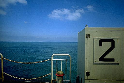 Ferry to Oita Prefecture、located in Kyuushuu facing Inland Sea me&my 3rd motorcycle YAMAHA XJ400 客室へあがるが天気が良いのでデッキですごすことにする。